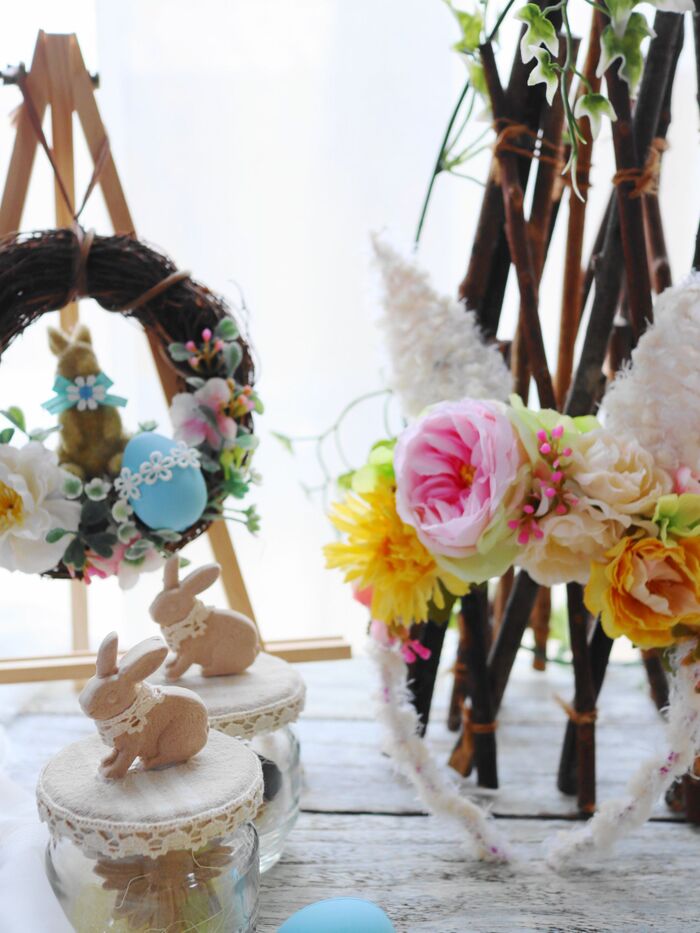 お花が付け終わった状態。後ろはこのままでもいいのですが、見える場所なのでもうひと手間。