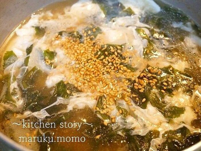 その白身を入れふわりと混ぜ火を止めゴマを入れました。