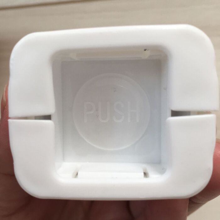 ブルーのせっけん部分が短くなったら、裏をpush。