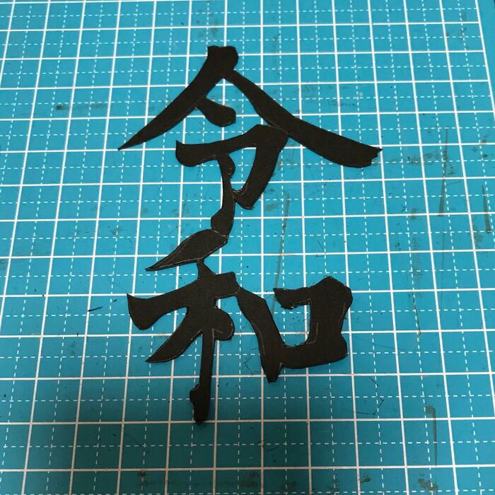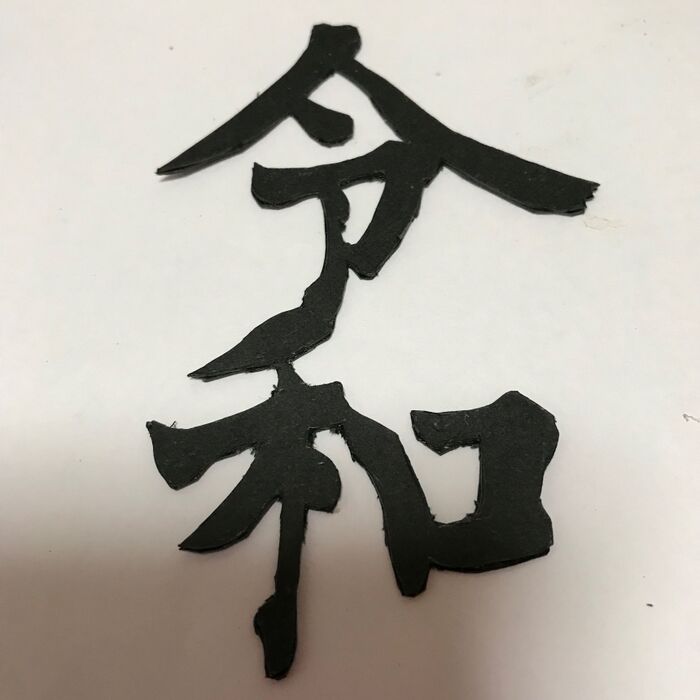 新聞に載ってきた「令和」の文字を参考に厚紙に「令和」の文字を2つ写します。