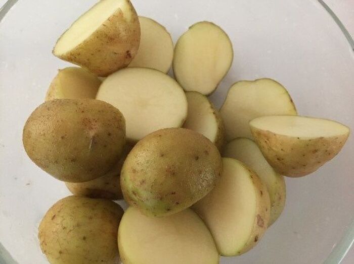 新じゃがは 汚れを落とし皮付きのまま半分に切り 600Wのレンジで
