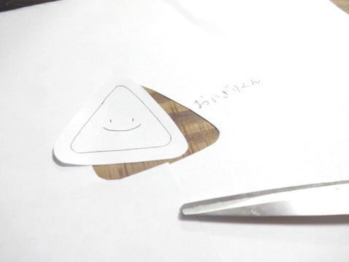 まん丸に型紙を作れば、おむすびになります。