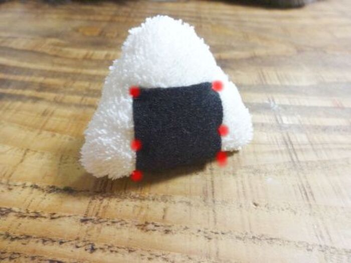 おにぎりに海苔を縫い付けます。