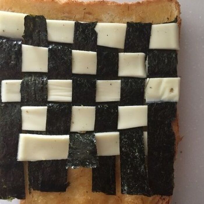 最初チーズを先にパンにのせて 海苔を編み込んでいこうと思ったら