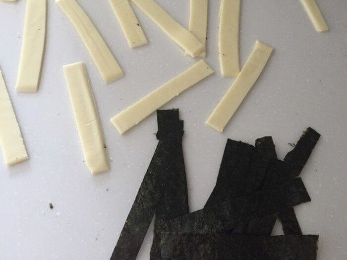 チーズを海苔の間に編み込むようにのせていく