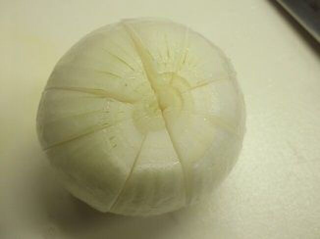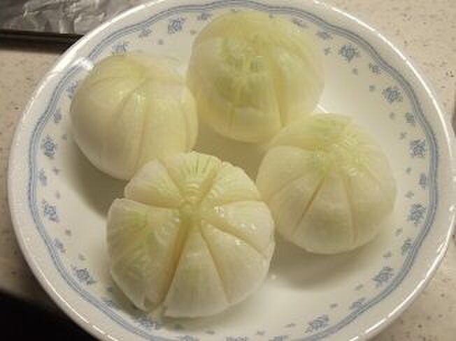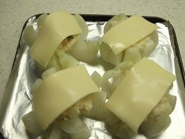 玉ねぎをのせ、ポテサラをギュッと押し込む。