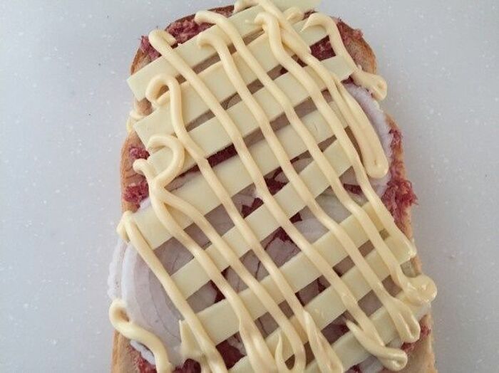 スライスチーズを細長く切り全体にのせ マヨネーズをのせトースターで
