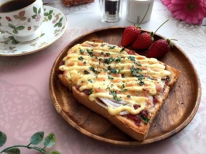 混ぜたりする作業がなく ただのせていくだけなので 時短・簡単で朝ごはんにおすすめです。
