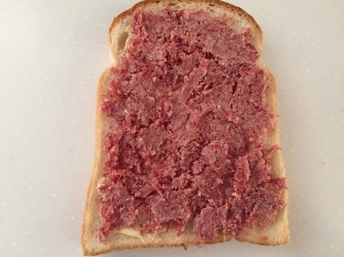 食パンにマヨネーズを全体に塗り(5g位) コンビーフをほぐして