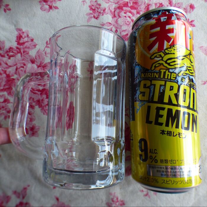 500㎖のお酒と並べてみました。このザキリンストロングシリーズが、主人のお気に入りです。私は、1口も飲んだことありませんが在庫が無くなるとせっせと買いに走ります。(笑)