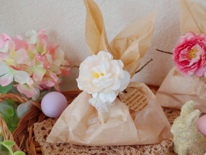 耳の部分を広げてうさぎっぽく形を整えてあげてください。