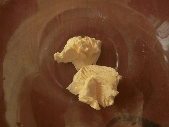耐熱ボウルに水とバターを入れ、フタをせずに電子レンジ600wで2分加熱します。