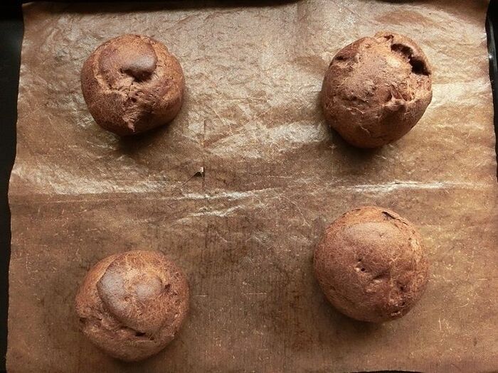 シュー生地にカスタードクリームを入れ、ビスケットをチョコペンで付けたら完成♪