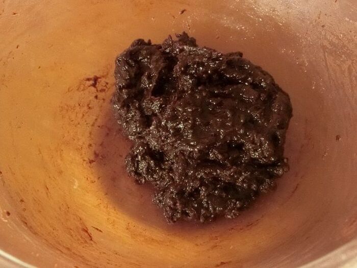 木べらから落とすとゆっくり落ちるくらいの固さにします。