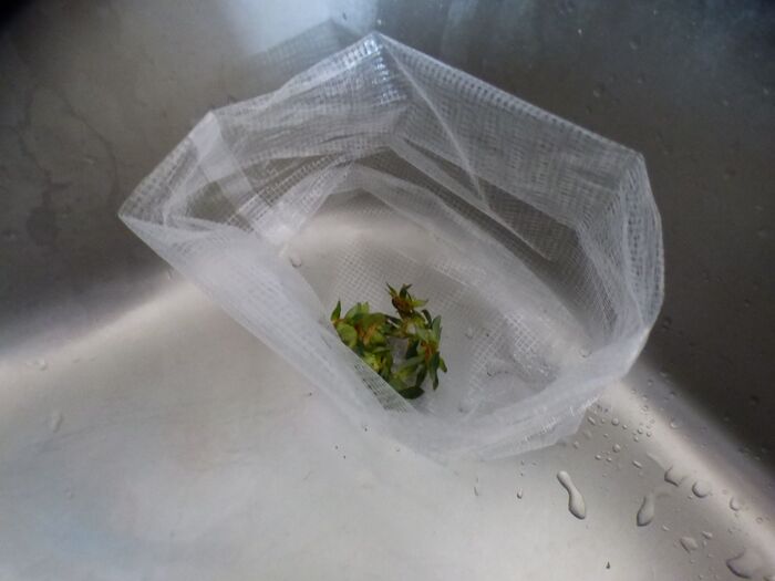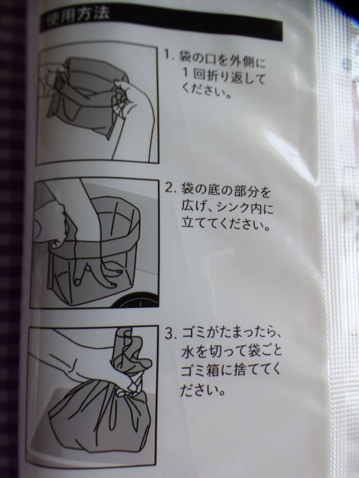 ③ゴミがたまっツたら、水を切って袋ごとゴミ箱に捨てる。