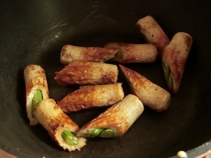 フライパンにマヨネーズを入れて炒め、焦げ目がついてきたら