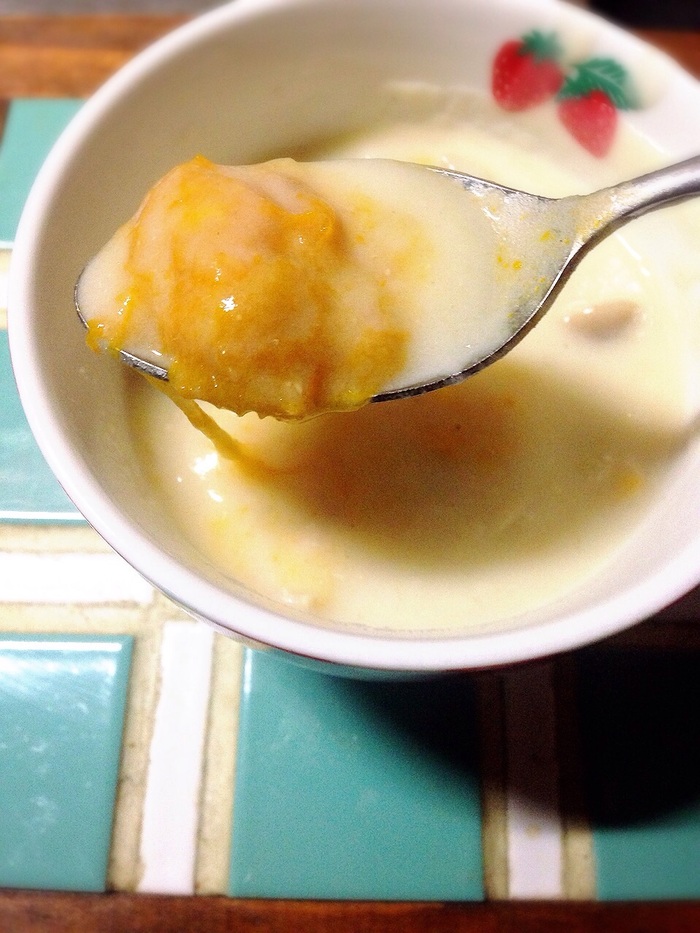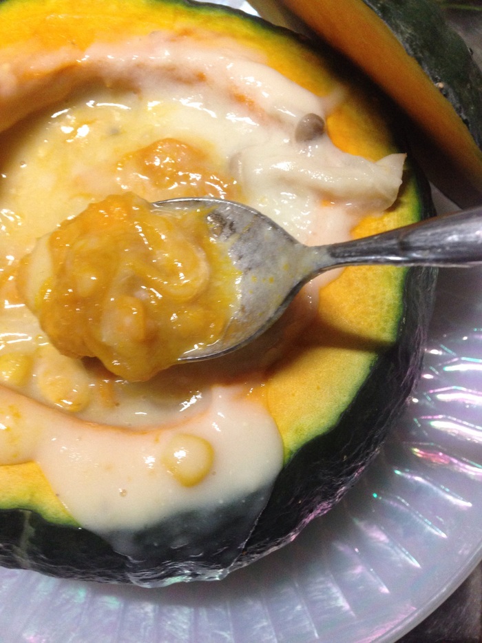 カボチャは、丸ごとラップでくるみ、レンジで5〜8分ほど温める。