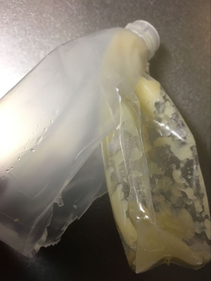 先日、容器を底の方から丸めても中身が出なくて逆さにして降ってみようとしましたが、容器がへこんでしまいました。
