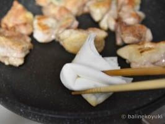 煮汁を加える前にしっかり油を拭き取っておいてください。