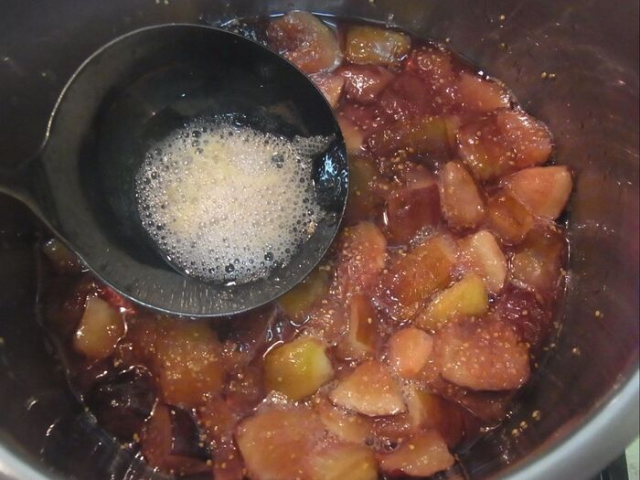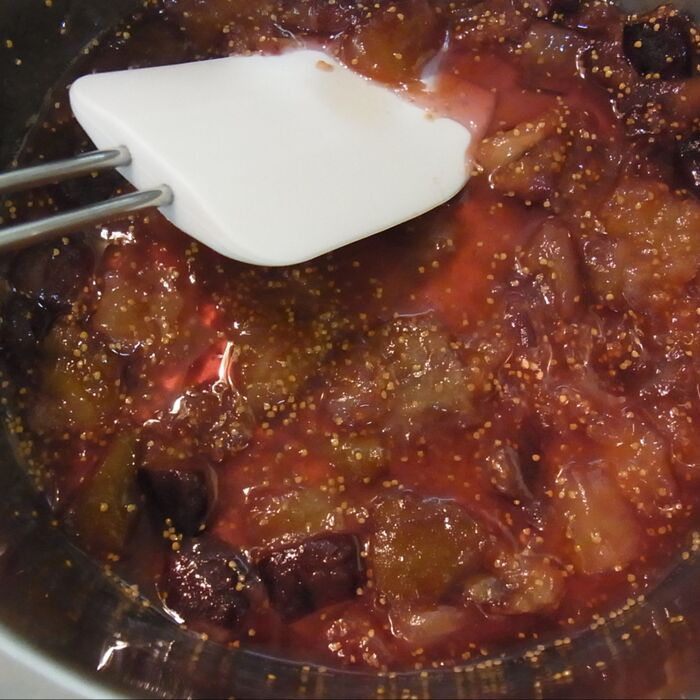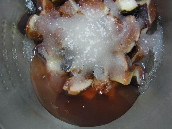 ジャムのグラニュー糖の比率は、イチジクの重量に対して37~45%が甘過ぎずいいかな?