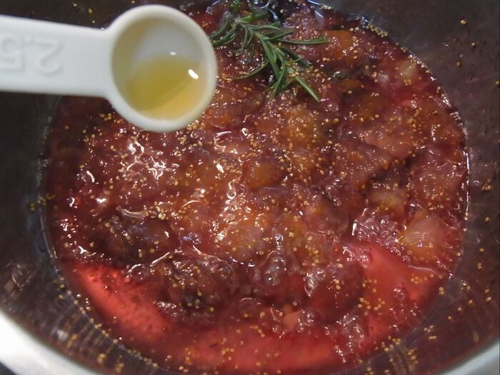 ☆熱いうちに煮沸消毒した瓶に移し、粗熱が取れたら冷蔵庫で保存します。