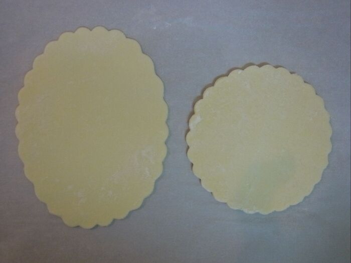*パイシートを直径10㎝の菊型で抜きます。