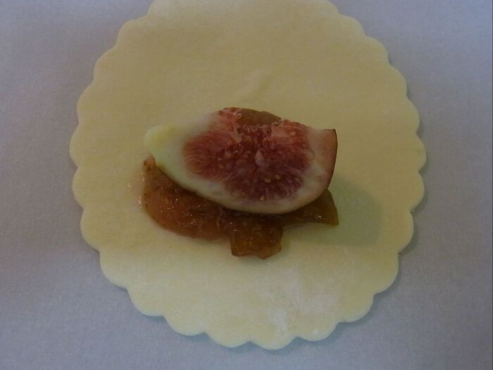 *生地の中央にジャムを置き、6等分にしたイチジクをのせます。