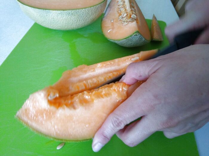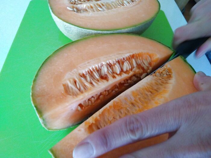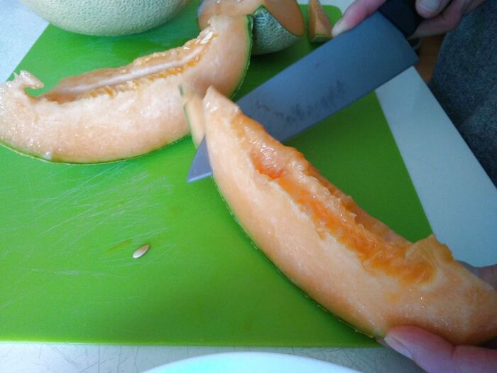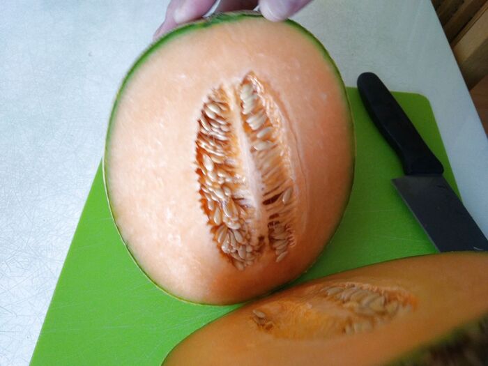 では、熟したカンタロープメロンを出してみましょう!