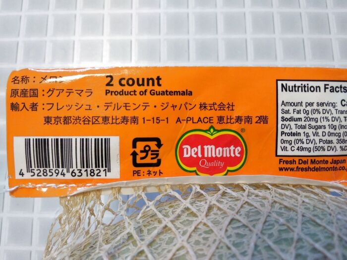 実は、カンタロープメロンは、コストコのフルーツコーナーで販売されているのですが、パッケージもネットに入っているだけなので、知らない人は意外とスルーしがちなんですね。