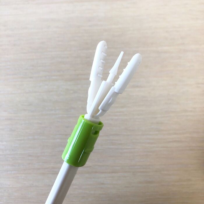 真ん中の尖った先にメラミンスポンジを刺して