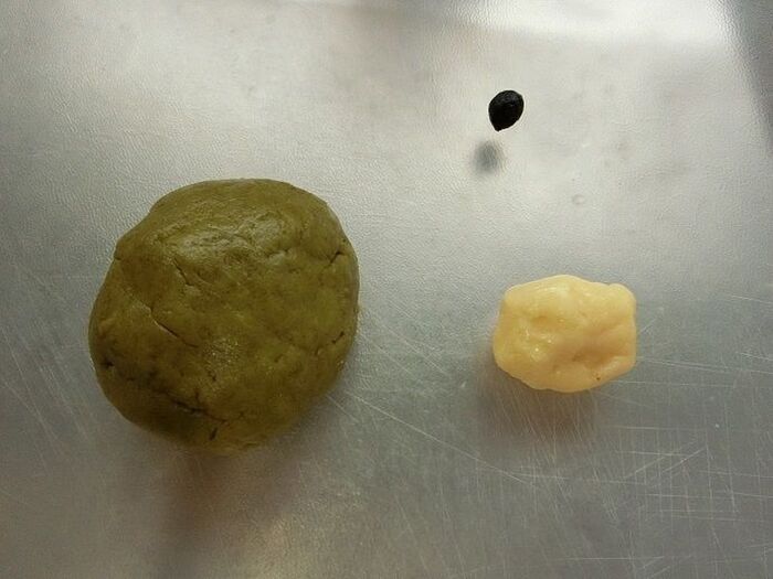 80g取り分けそのままの白色で、残りに抹茶を混ぜ合わせます。