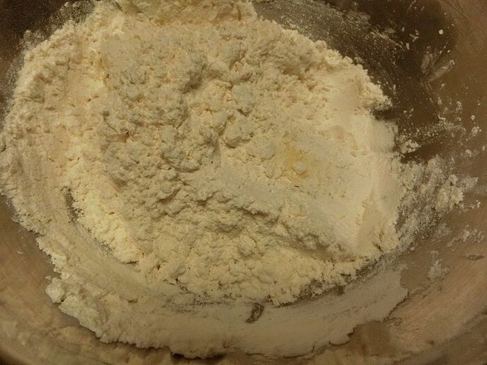 薄力粉とベーキングパウダーをふるいにかけて混ぜ合わせます。