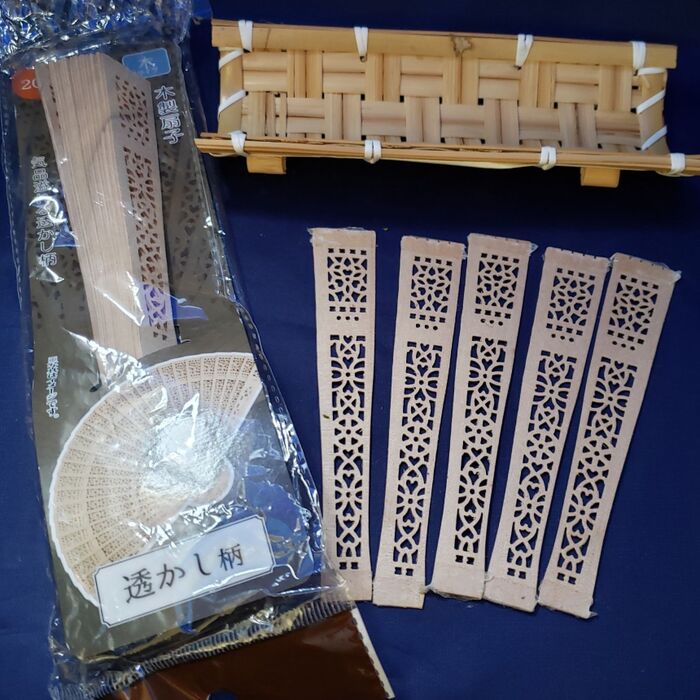⑦ ツルの枠部分に木製の扇子を柄の部分を中心に長さを合わせてカットする。
