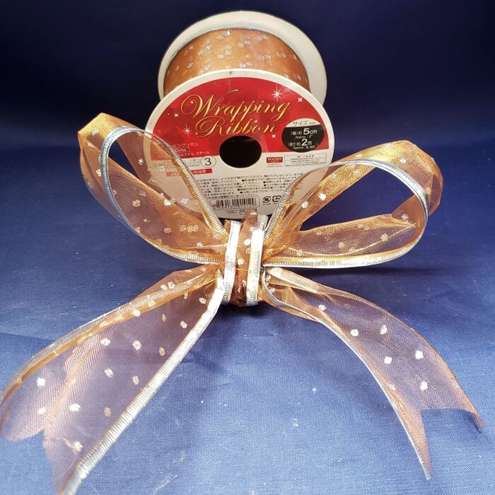 ⑤ ラメ・ラッピングリボン幅5cmを使って大き目の蝶結びを作る。