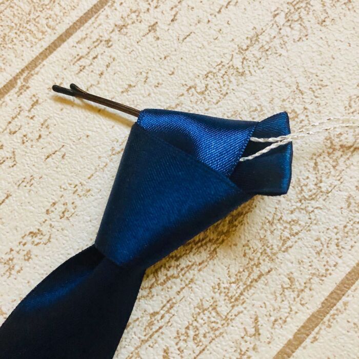 ネクタイの結び目裏側の内に輪のテープを貼り、