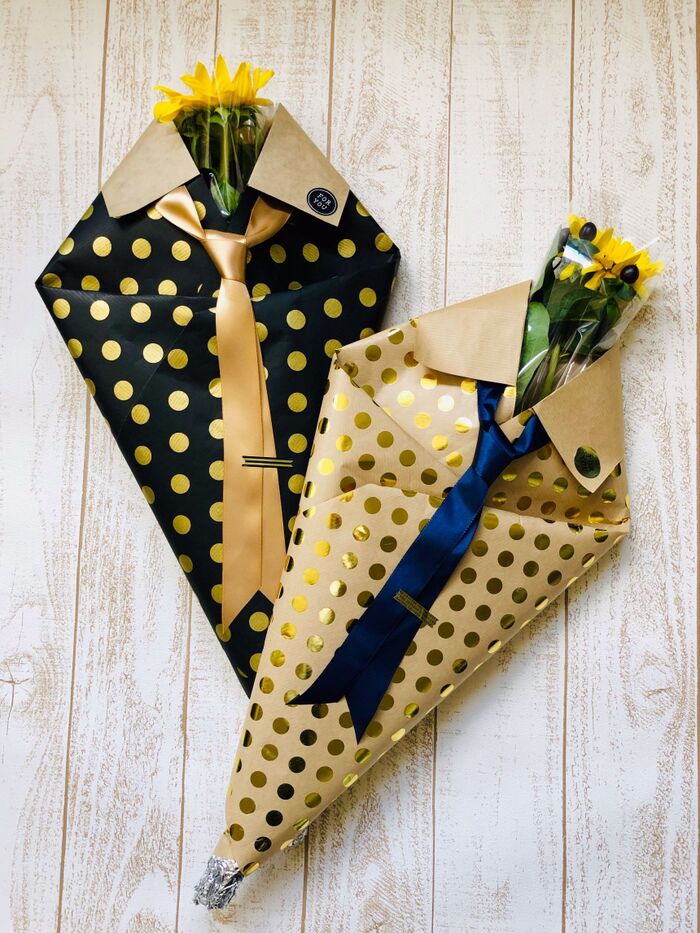 お花もお父さん風なラッピングスタイルでおめかし♪