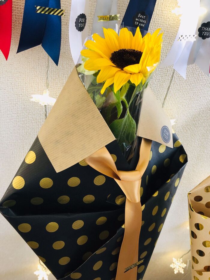 ちょこっとお花のお顔を出すのがこちらのラッピングのポイントに^^