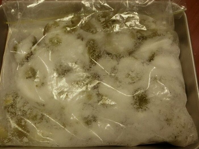 ジッパーの袋に入れて冷凍庫で凍らせます。