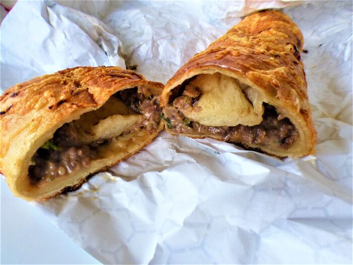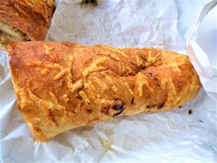 外側にチーズが、かけてあり焼いてあるパン生地の中身は・・・