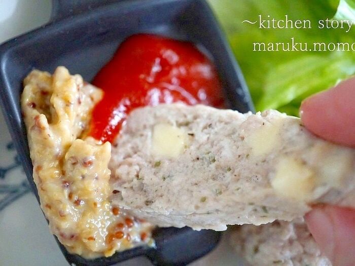 粒マスタードとケチャップを付けて食べると