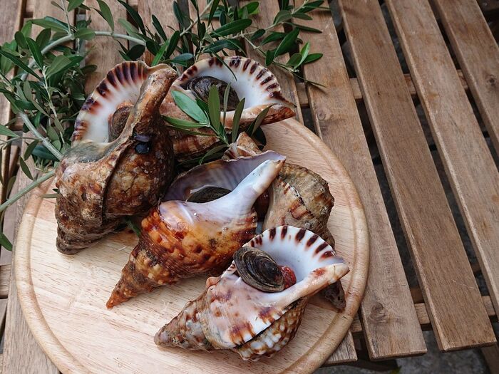 生きている身を・・・・・アヒージョオイルに入れると、むにょむにょ動くんで・・・・