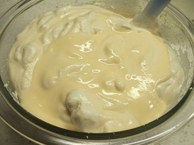 メレンゲを壊さないようにふんわり混ぜるのがポイントです。
