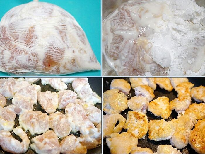 ①鶏肉は一口サイズにカットして、保存袋に入れ、