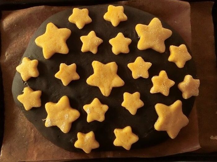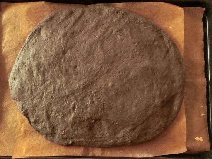 (丸い生地にするために半分にしましたが、天板いっぱいに四角くしてもOK)