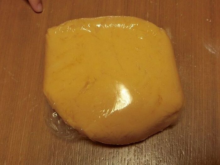 とうもろこしパウダーをまぜあわせ、ラップにくるんで冷蔵庫で30分休ませます。