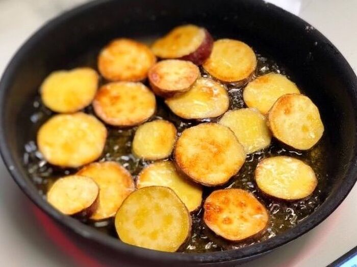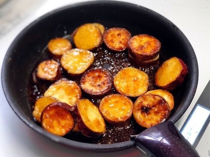 ♦︎さつまいもがちょうど収まるくらいのフライパンを使用するのがおすすめです♩