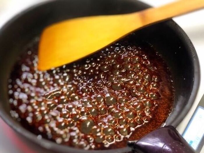 3.フライパンをさっと綺麗にし、●を入れて中火にかける。混ぜながら加熱し、たれにとろみがついたら2を戻し入れてからめる。