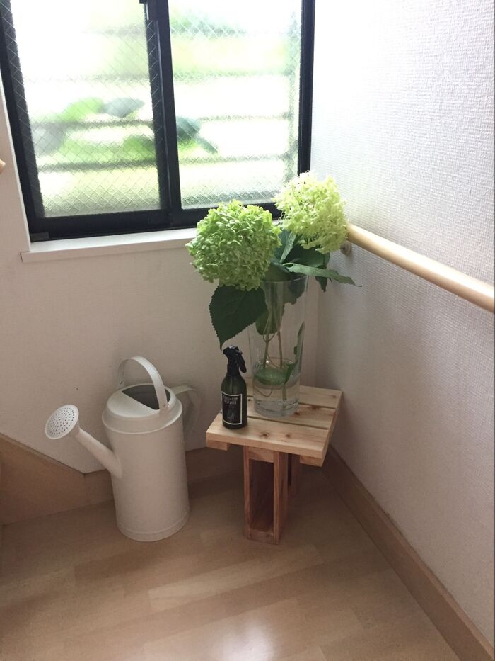 玄関のインテリアにより統一感を持たせるために、先にご紹介した玄関の収納の他にもパレットを使用した収納をいくつか設置しています。