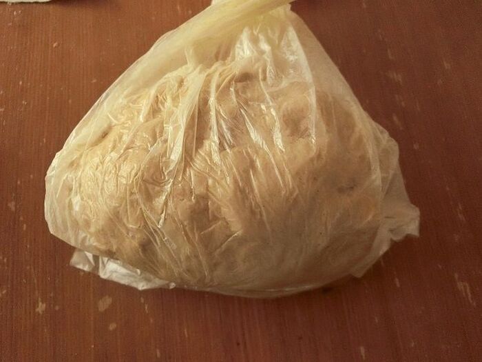 パン生地が2倍くらいに膨らんだらガス抜きをします。