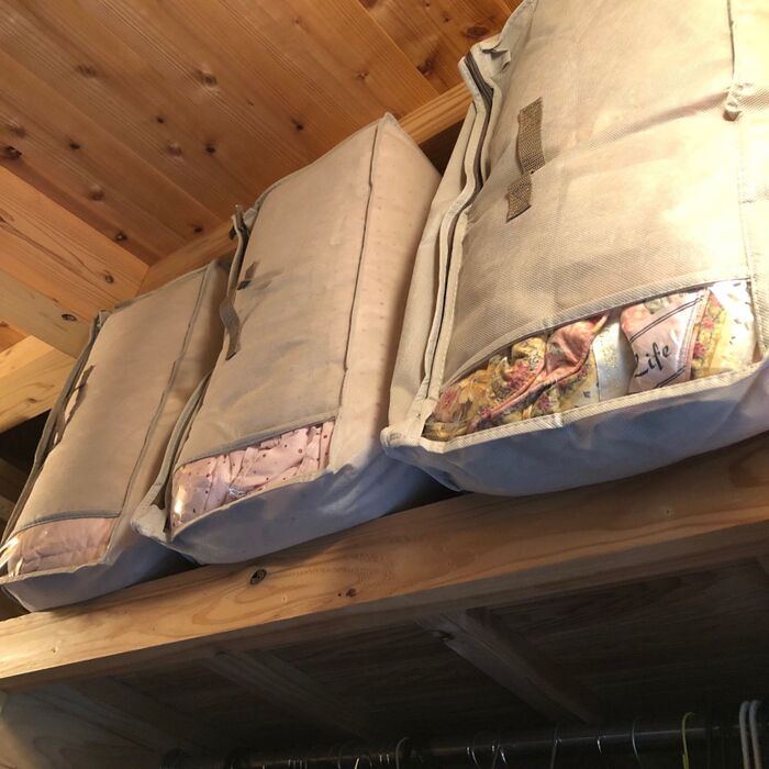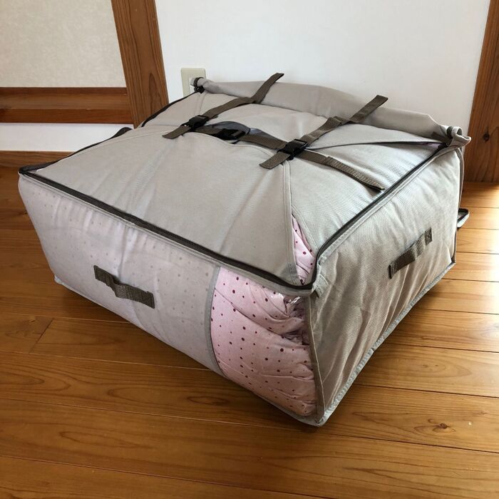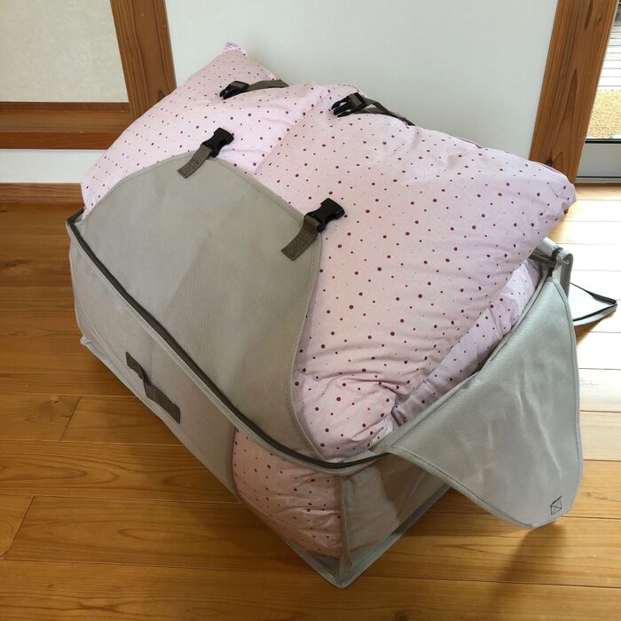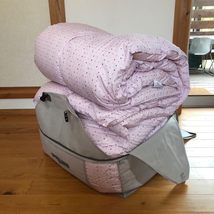 シングル2枚とダブル1枚。あとシングル1枚だからサイズを小さくする事も可能ですが、見た目を整えたくて同じMサイズに。スッキリ片づけられました!